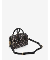 ピンクのムーンプリントが施されたブラックレザーとフェイクレザーのテクニカルファブリックを使用したクロスボディバッグ。