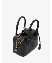 ゴールドトーンのメタルディテールが施された、ブラックのダメージ加工レザーを使用した Vita ハンドバッグ。