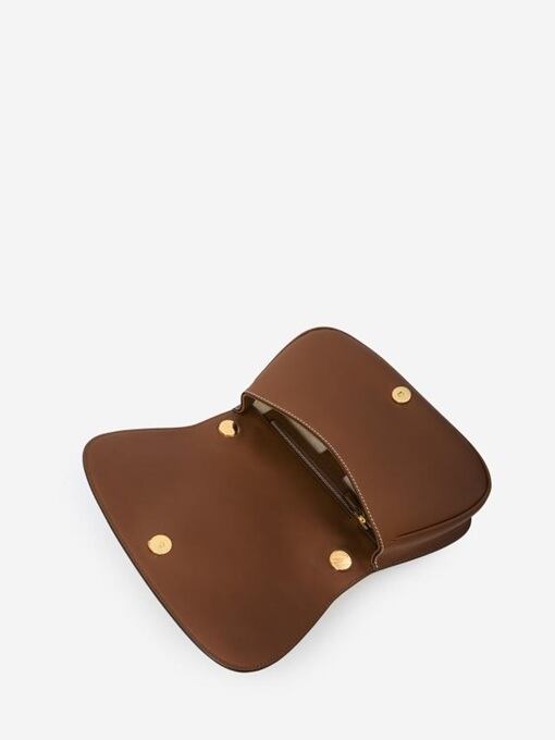 ブラウンのレザー GG インターロッキング ラウンド ロゴ、マグネット開閉、コントラスト ステッチ、オープン バック ポケット、取り外し可能で調節可能なショルダー ストラップ、レザー トップ ハンドル、内部コンパートメント 1 つ、内部ジッパー ポケット 1 つが特徴です。