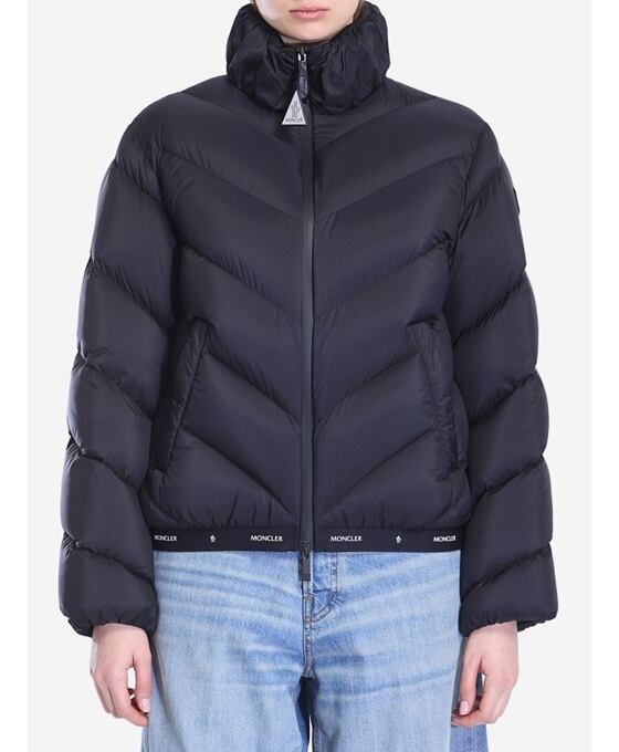 斜めのキルティングが施された、ブラックのリサイクルナイロンを使用したグリニャン ダウン ジャケット。