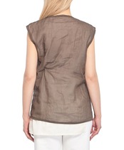 ブラウンのコットンオーガンザとホワイトのコットンシルク混紡を使用した、ノースリーブのイナワ トップス。