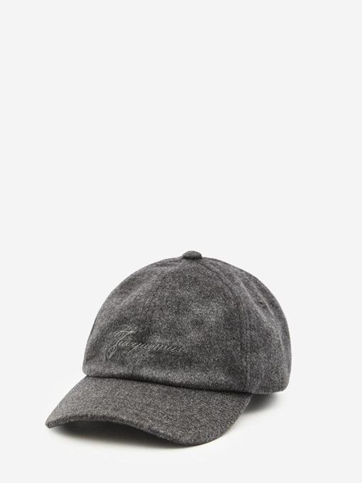 フロントにトーン・オン・トーンのジャックムス シグネチャーの刺繍が施され、バックに調節可能なストラップが付いています。