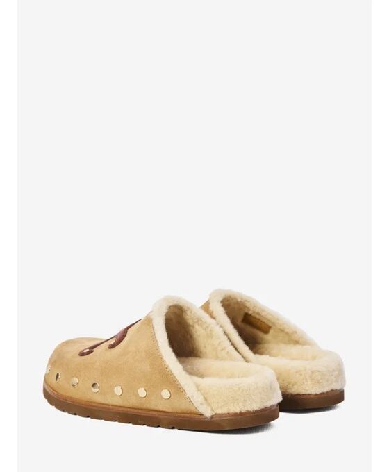 ラウンドトゥ、フロントにブラウンのトリオンフロゴアップリケ、スタッズディテール、パッド入りレザーインサート入りのシアリングインソール、テクスチャードラバーソールが特徴です。