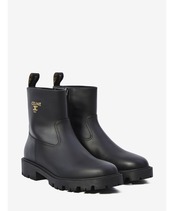 ラウンドトゥ、サイドにゴールドのエンボスロゴ、バックにトリオンフツイルのプルタブ、サイドジップ開閉、カーフスキンレザーのライニング、レザーインソール、レザーウェルト付きラバーソールが特徴です。