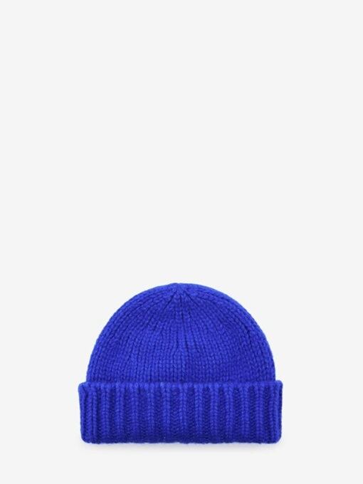 ロイヤルブルーのカシミアとシルクの混紡ニット帽。