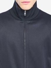 ダークブルーのテクニカルジャージー素材のスウェットシャツ。