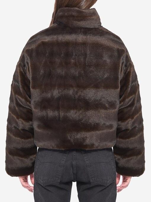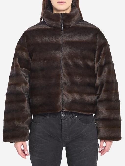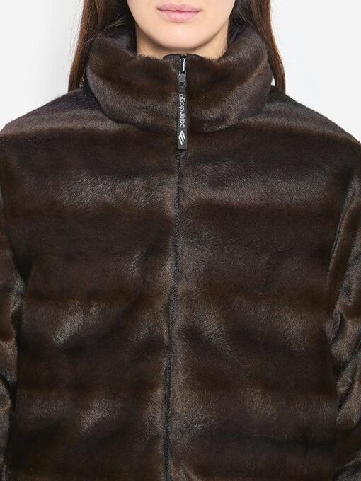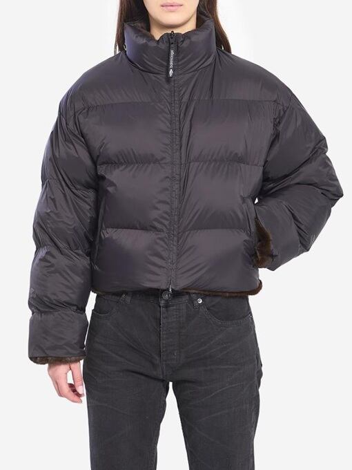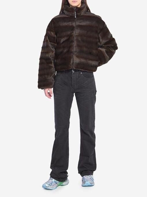 片面はブラウンのフェイクファー、もう片面はブラックナイロンのリバーシブル中綿ジャケット。