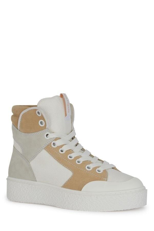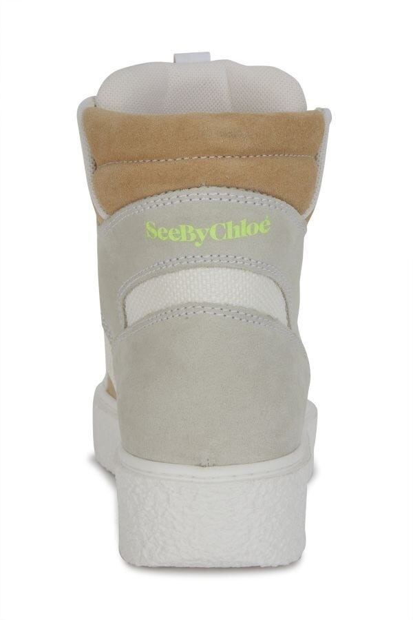 ベージュ、グレー、ホワイトのレザー スニーカー By:SEE BY CHLOE(シー バイ クロエ)