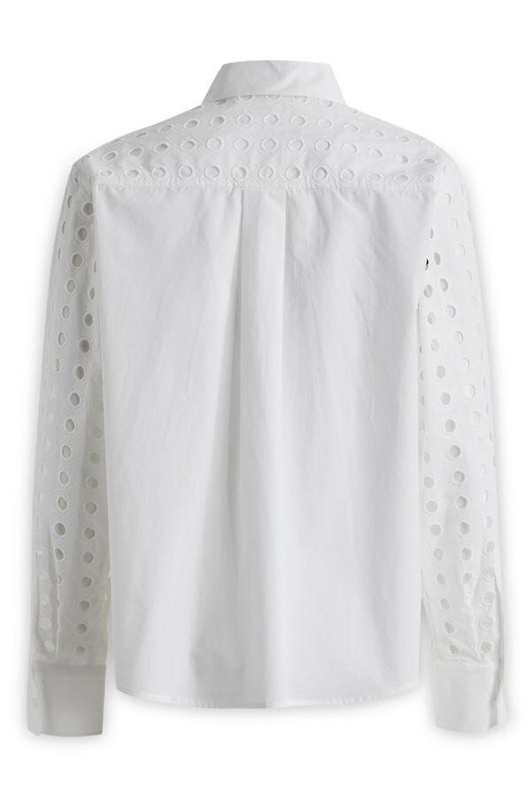 アイレット加工を施した長袖が特徴の、コットンポプリンシャツです。