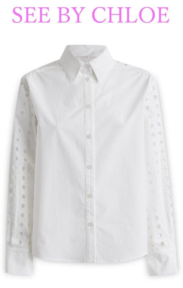 ホワイト コットン ポプリン シャツ By:SEE BY CHLOE(シー バイ クロエ)