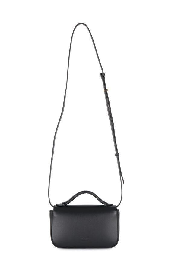 コンパクトで構造的なデザインが特徴で、フラップに施されたゴールドのメタル B がアクセントになっています。