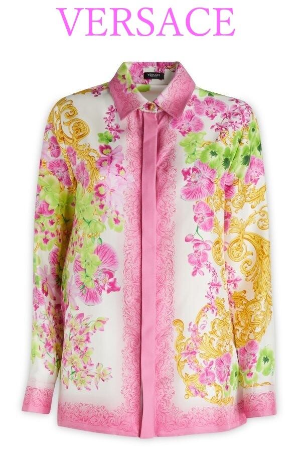 2000年代初頭のアーカイブから取られた花柄のメデューサ オーキッド プリントが特徴の、ピュア シルク製のシャツです。