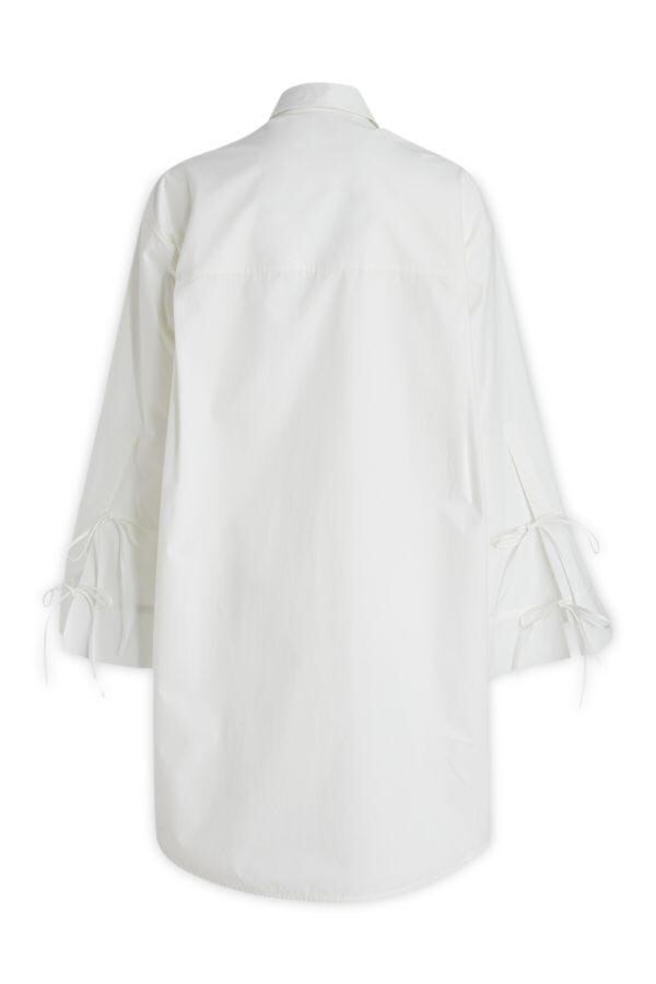 結べる幅広の袖口が特徴のコットン素材のシャツワンピースです。
