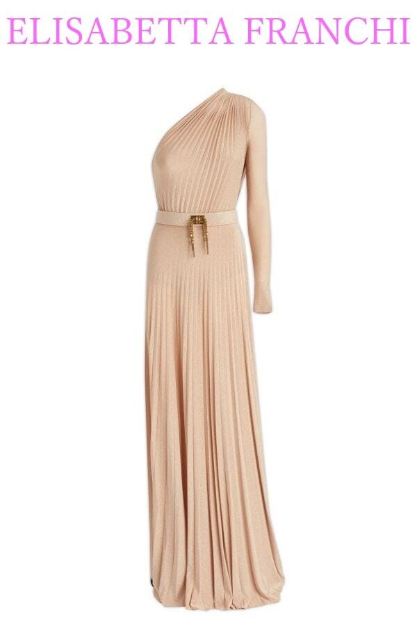 パウダーピンクのルレックスジャージー製ロングドレス By:ELISABETTA FRANCHI(エリザベッタ フランキ)