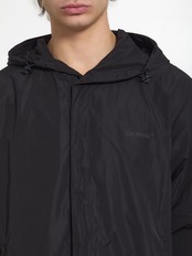 バックに同系色のディアグ タブ モチーフがプリントされた、ブラックのテクニカル ナイロン製ウインドブレーカーです。