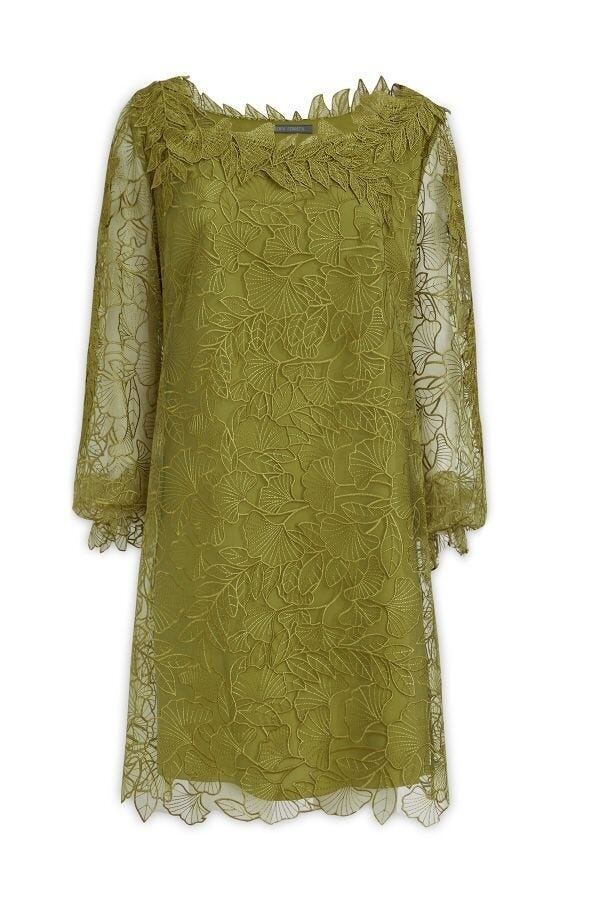 オリーブグリーンのチュールストレートドレス By:ALBERTA FERRETTI(アルベルタ フェレッティ)