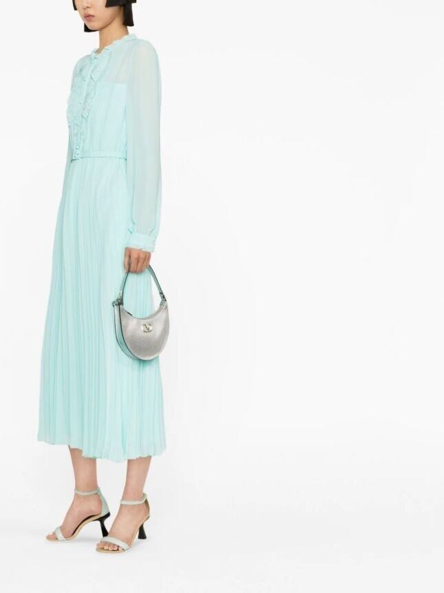 美しいカラーとシフォン素材が特徴のミディドレスです。