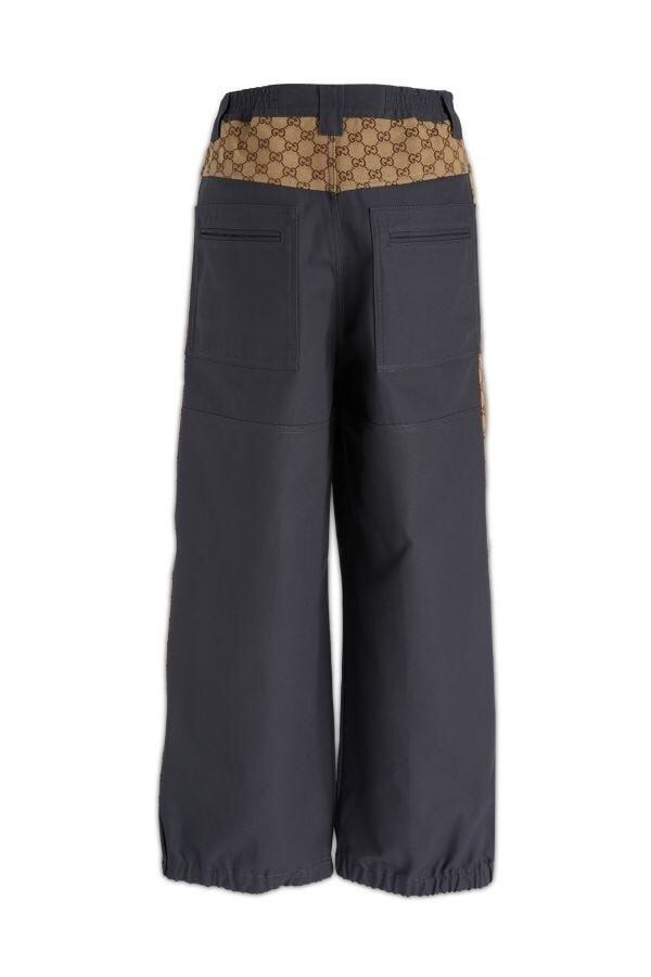 ベージュとエボニーのGGファブリックのインサートが特徴的なコットンファブリック製のパンツです。