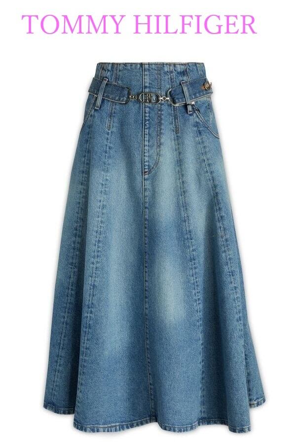 幅広の半円構造が特徴のピュア コットン デニム製のミディ スカートです。