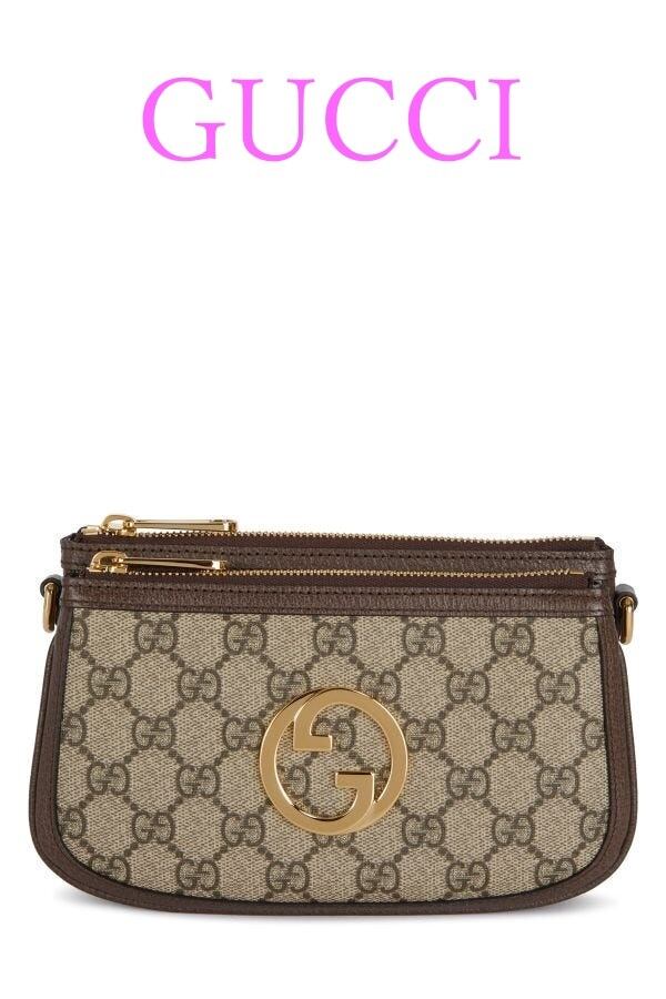 全体に GG スプリーム モチーフがプリントされ、フロントに施されたラウンド メタルの GG クロス ディテールがアクセントになったファブリック製のグッチ ブロンディ セカンドバッグです。