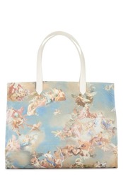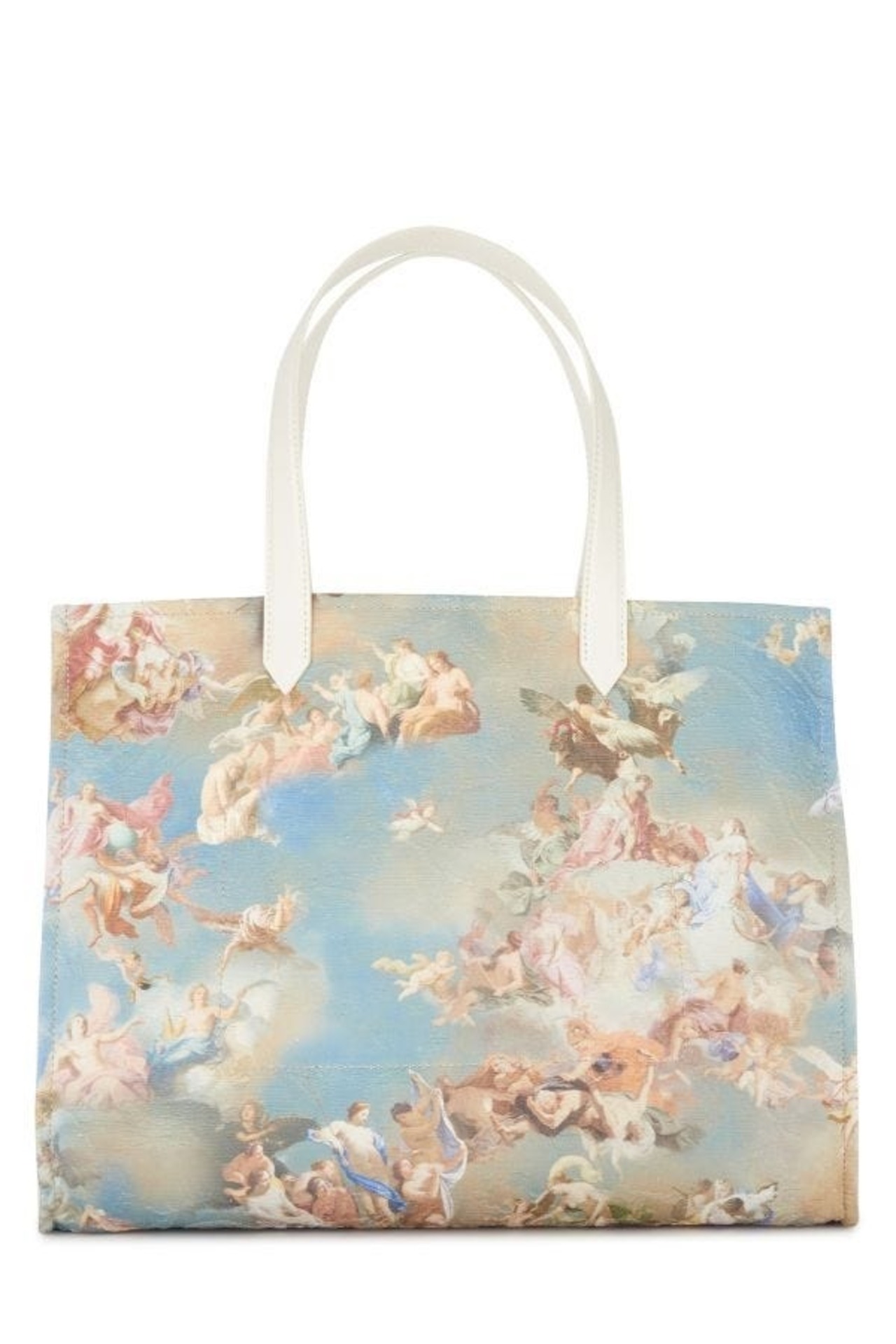 B-Army 42 ショッピング バッグはコットン キャンバス製で、スカイ プリントが特徴で、レザーのインサートがアクセントになっています。