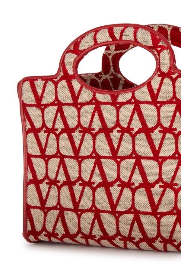 ベージュと赤のトワル・イコノグラフの Le Troisième バッグ By:VALENTINO GARAVANI(ヴァレンティノ ガラヴァーニ)