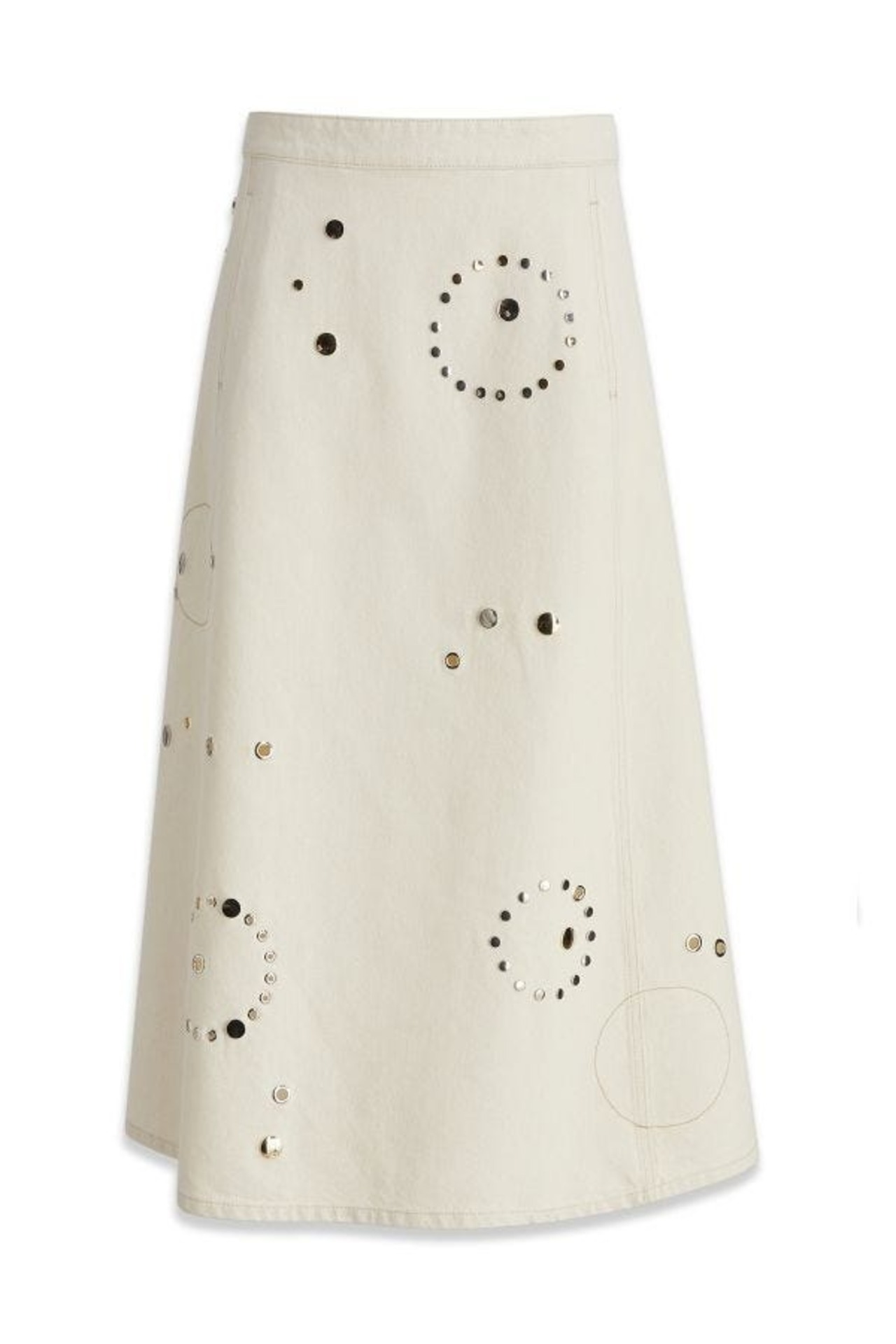 スタッズをあしらった円形の装飾が特徴的なコットン素材のスカートです。