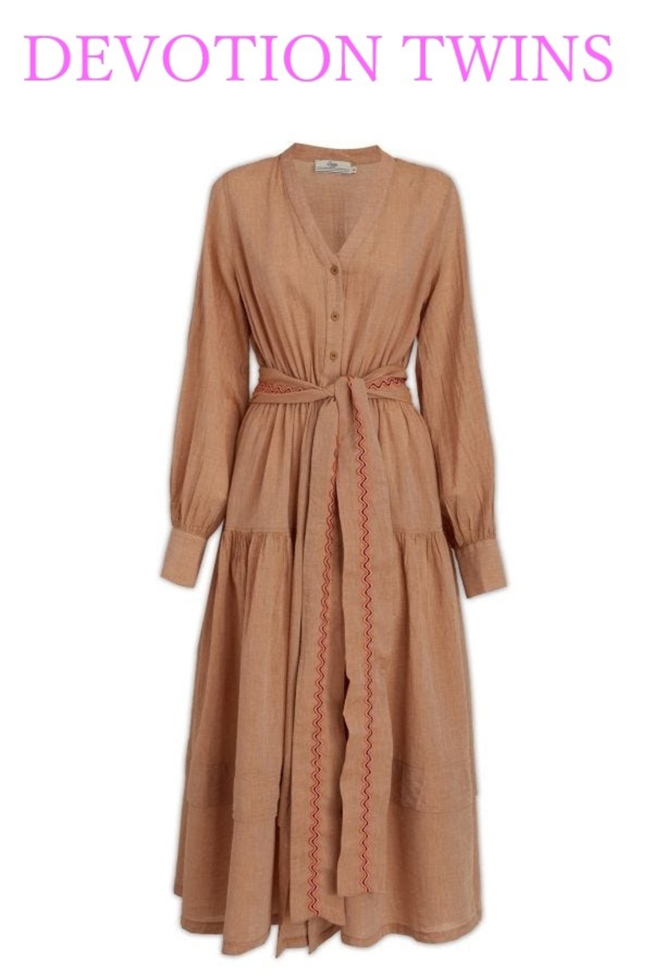 ライトブラウンのコットンミディドレス By:DEVOTION TWINS(デボーション ツインズ)