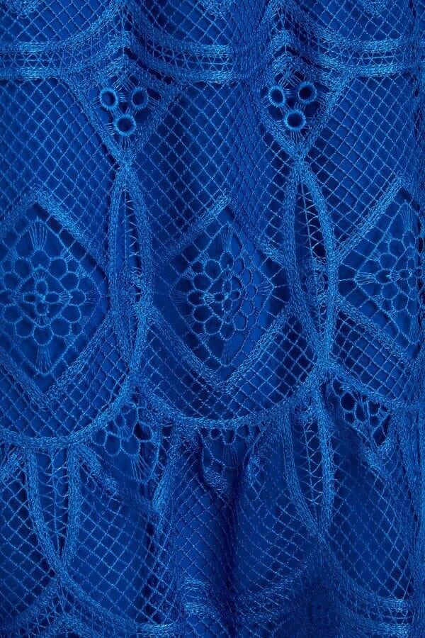 コーンフラワーブルーのマクラメレースのショートドレス By:ALBERTA FERRETTI(アルベルタ フェレッティ)