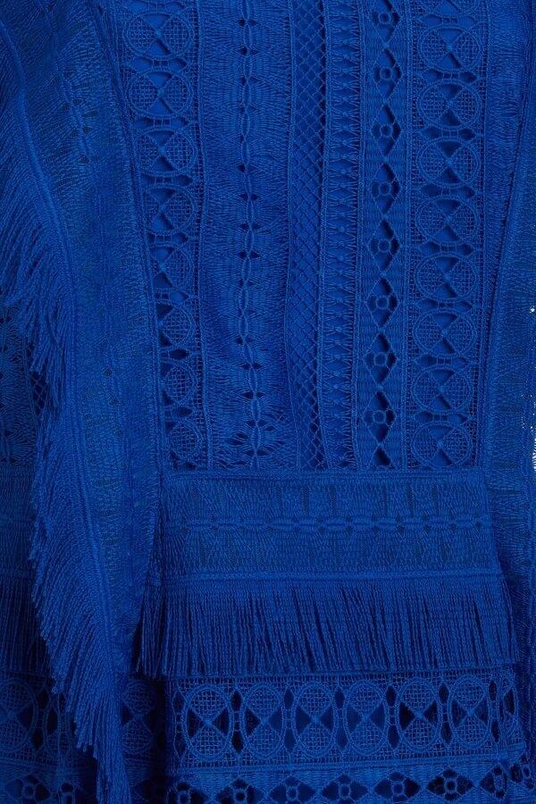 ブルー マクラメレース ミニドレス By:ALBERTA FERRETTI(アルベルタ フェレッティ)