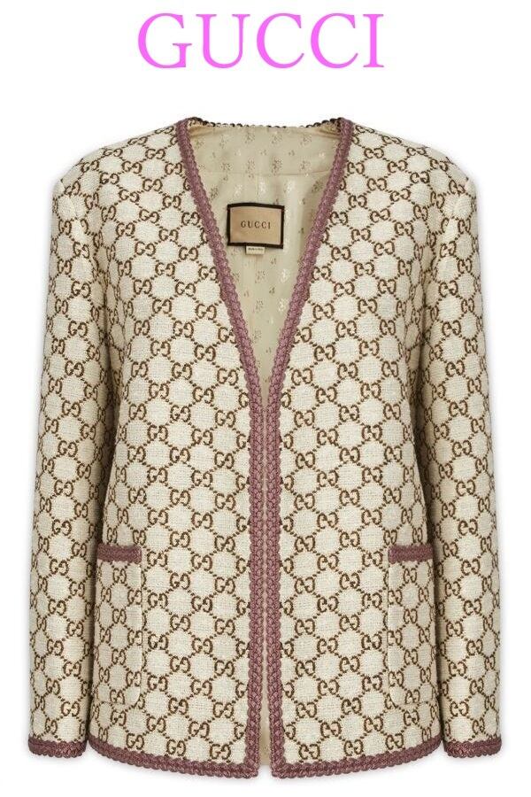 ベージュとブラウンのコットンツイードジャケット By:GUCCI(グッチ)