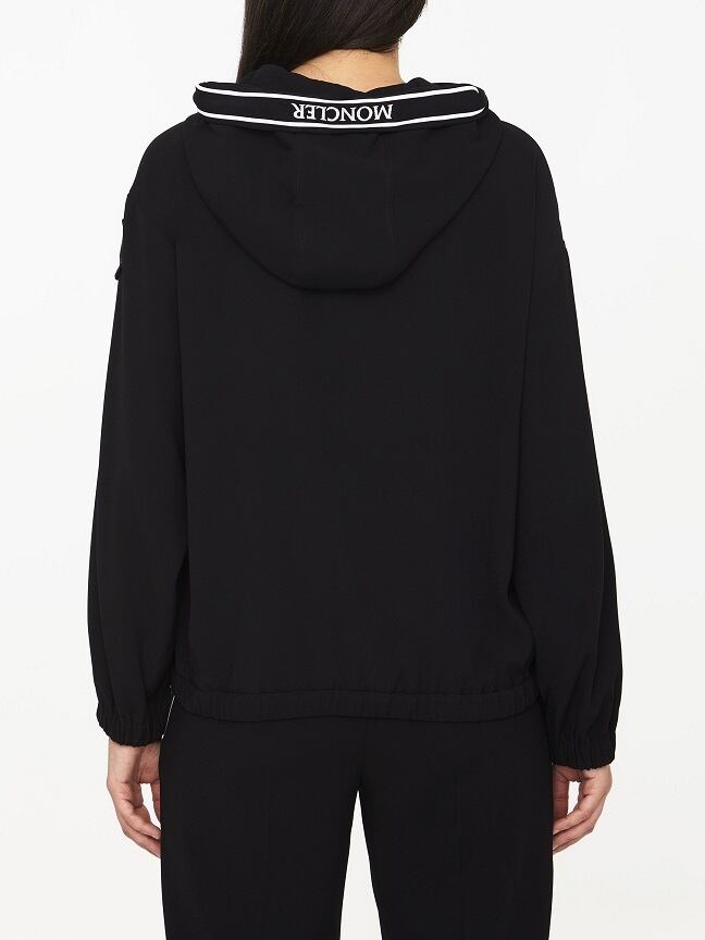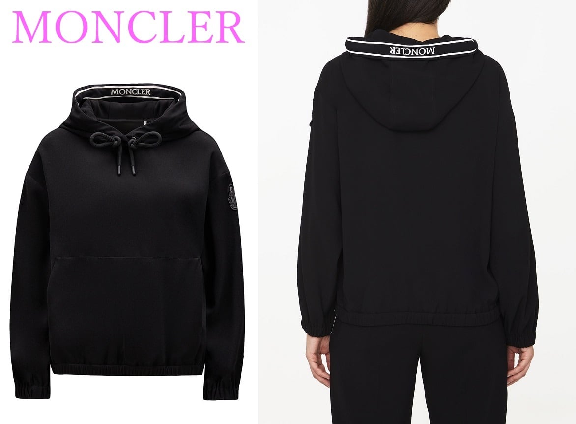 -ドローストリング付きのロゴ入りフード、フロントにカンガルーポケット 1 つ、左袖にモンクレールのパッチ