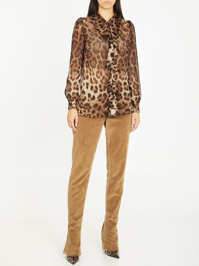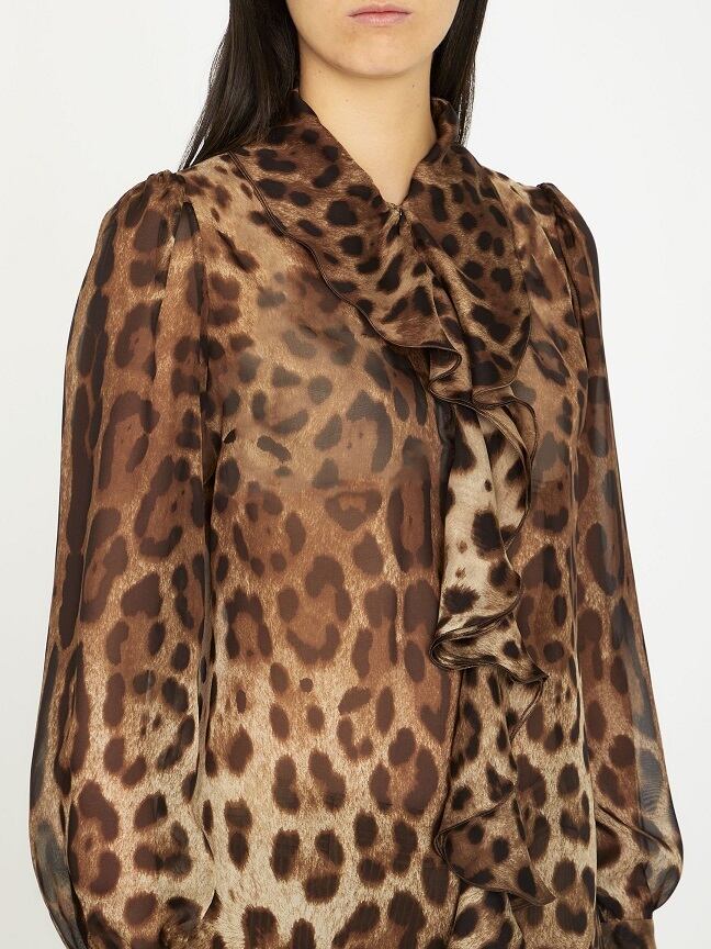 ヒョウ柄のセミシアーシルクシフォン製長袖シャツです。