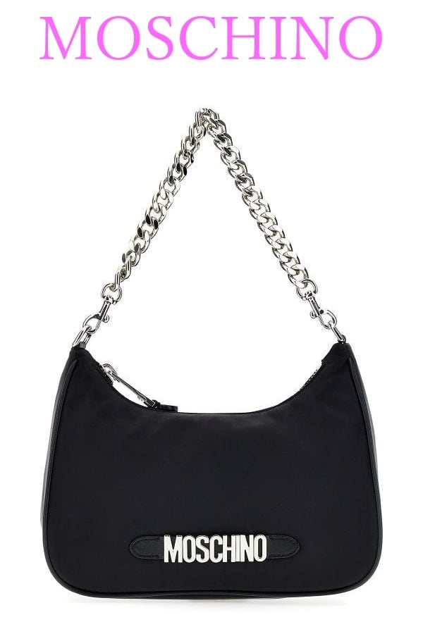 ブラックコットンブレンドのホーボーショルダーバッグ By:MOSCHINO(モスキーノ)