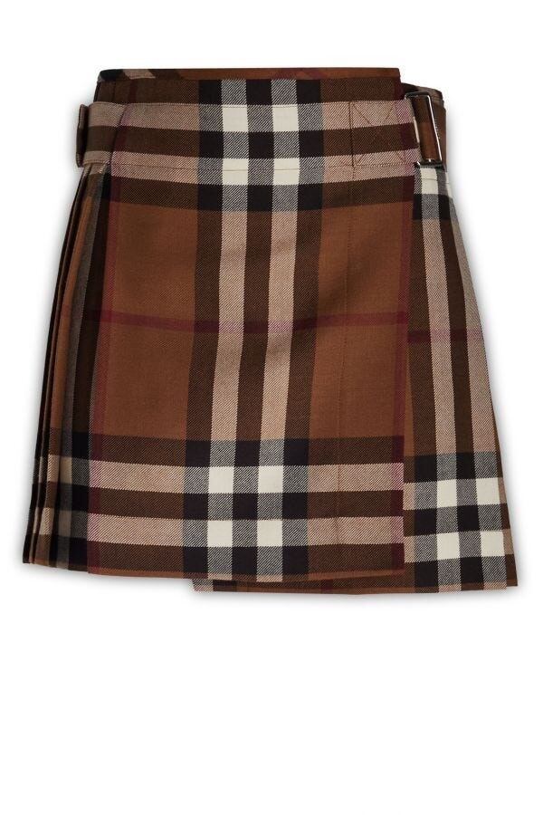 ピュアブラウンウールのラップスカート By:BURBERRY(バーバリー)