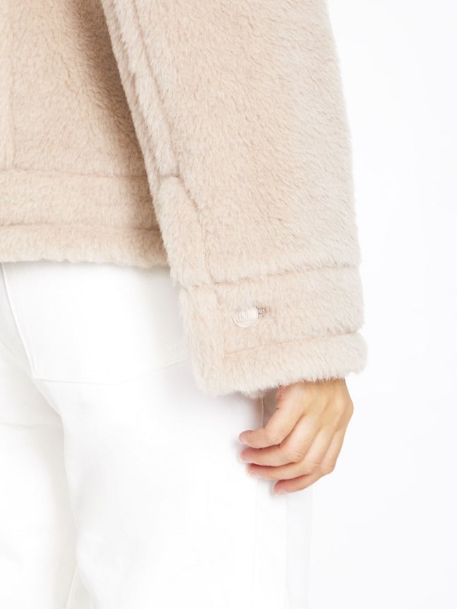 サンドカラーのアルパカ、バージンウール、シルクを使用したテディコート。