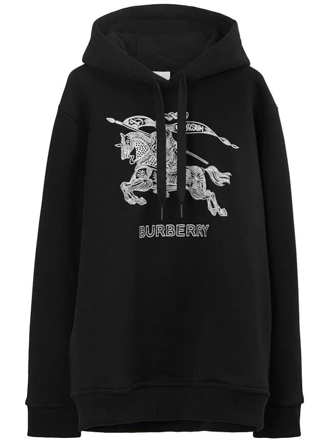 Equestrian Knight デザインの刺繍が施されたブラックのコットン パーカー。