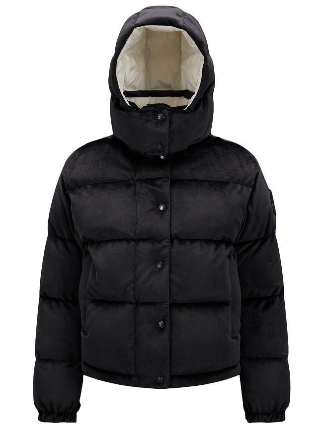 Daos ダウン ジャケットはブラック シェニールで作られ、リサイクルされたロングエ セゾンの裏地とダウンの詰め物が施されています。