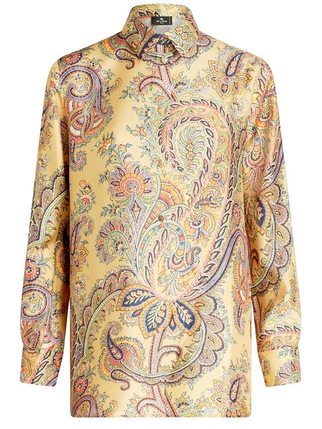 全体にペイズリーモチーフをあしらったシルクツイルシャツ。