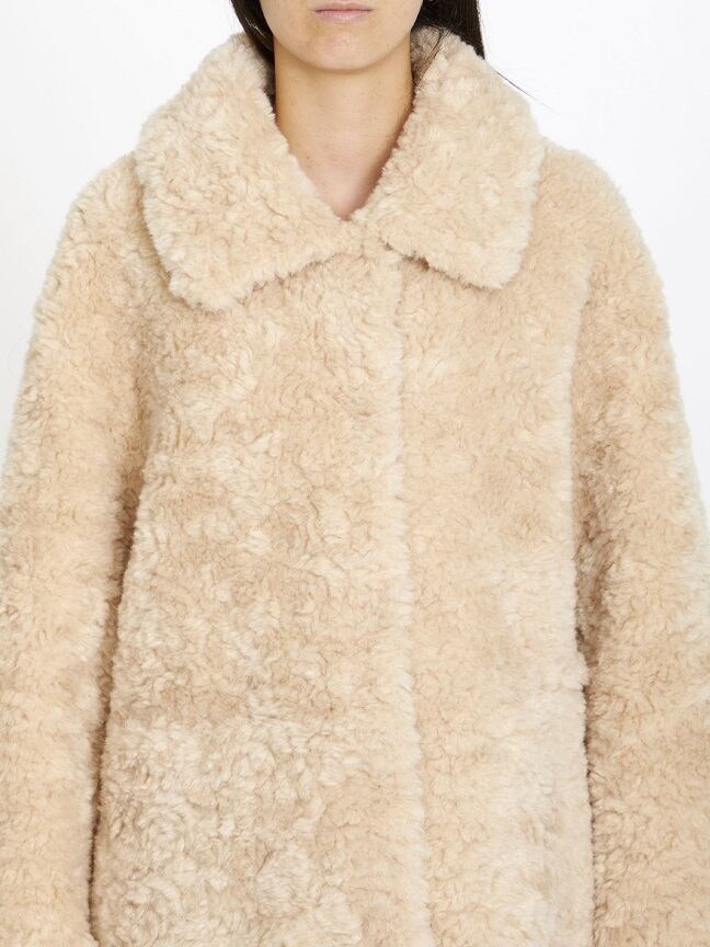 ハニーカラーのフェイクムートンを使用したケリーコート。