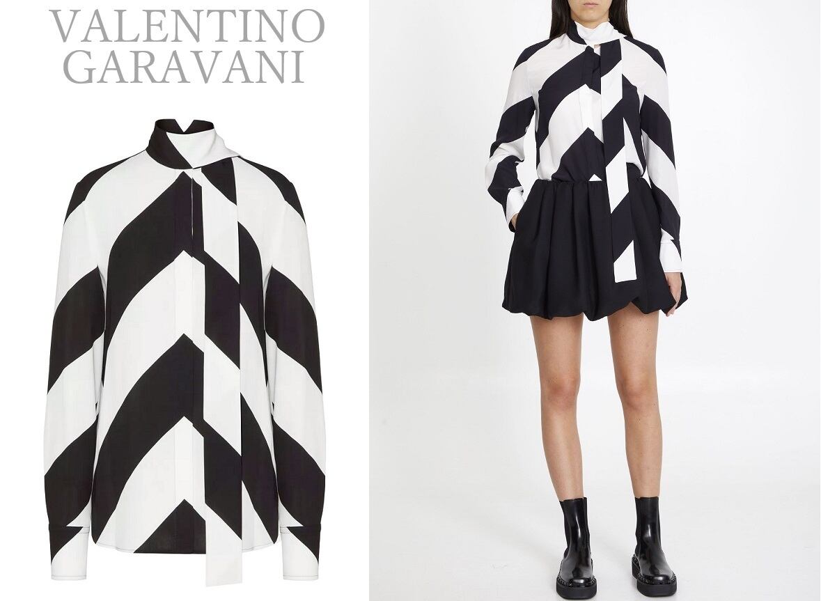 ブラックとホワイトのクレープ デ シン ストラハイプのヴァレンティノ シャツ。