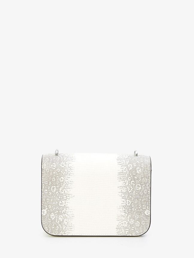 Eleanor Lizard ホワイトとグレーのスネークスキン風レザーのスモール バッグ。