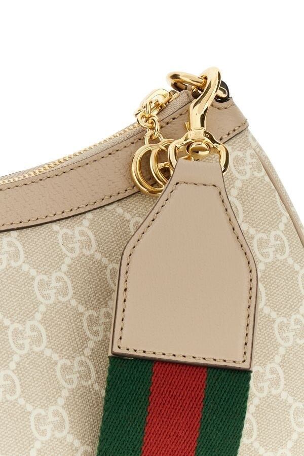 GGスプリーム生地で作られたハンドバッグで、エッジにハンマーレザーインサートが施され、前面のメタルGGディテールが引き立てられています。