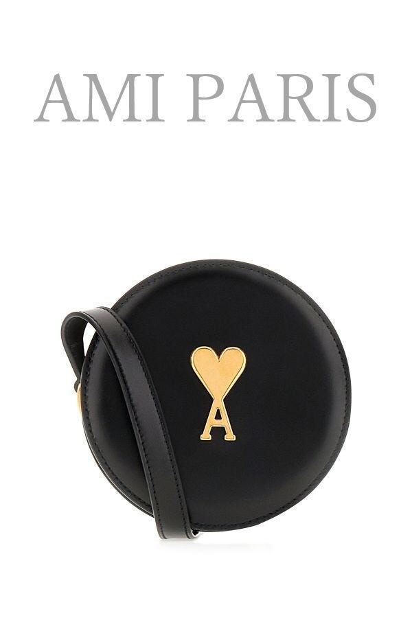 ブラックレザーショルダーバッグ By:AMI PARIS(アミ パリス)