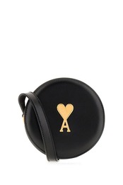 質感のあるレザーを使用し、前面にメタリックなアミ ドゥ クールのディテールをあしらったショルダーバッグ。