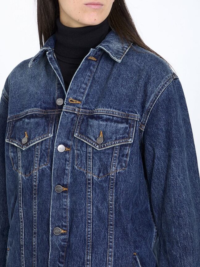 コントラストのあるトップステッチが施されたブルーのコットンデニム製ロスジャケット。