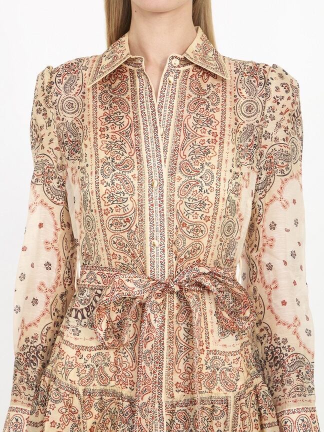 クリームバンダナリネンとシルク製のマッチメーカーシャツドレス。