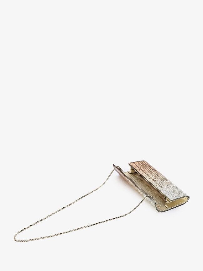 メタリック効果のあるデグラデグリッターを施したプレキシガラス製のスウィーティーポーチ。