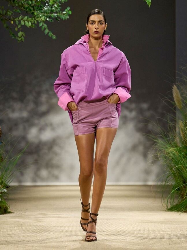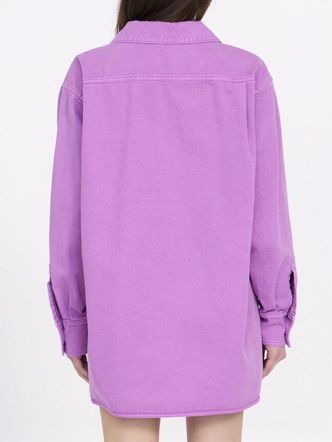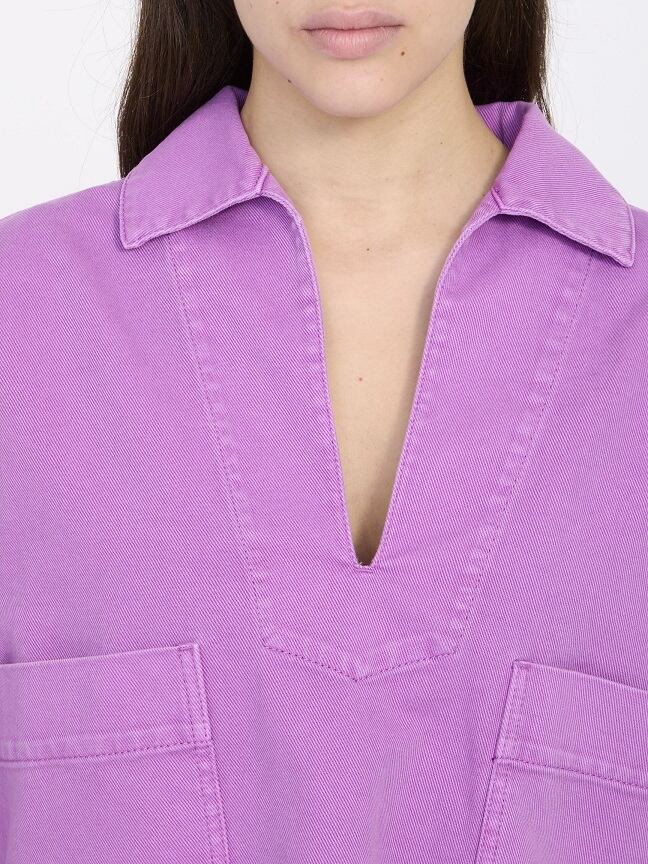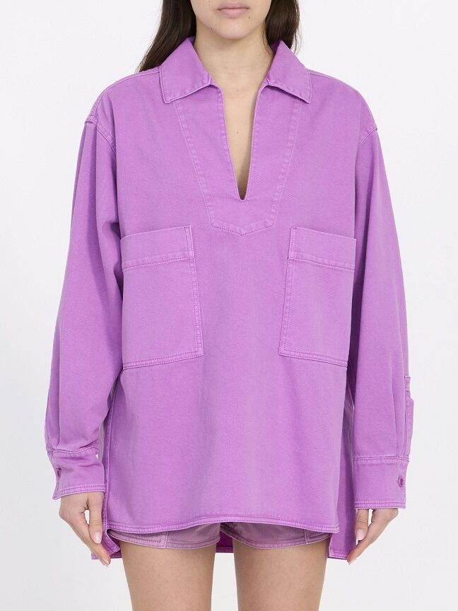 モーブ色のコットンドリル製ロレッタブラウス。