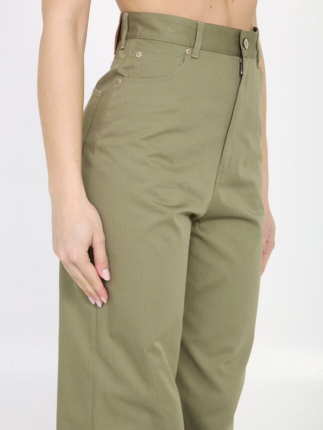 ミリタリーグリーンの軽量コットンドリルのハイウエストパンツ。